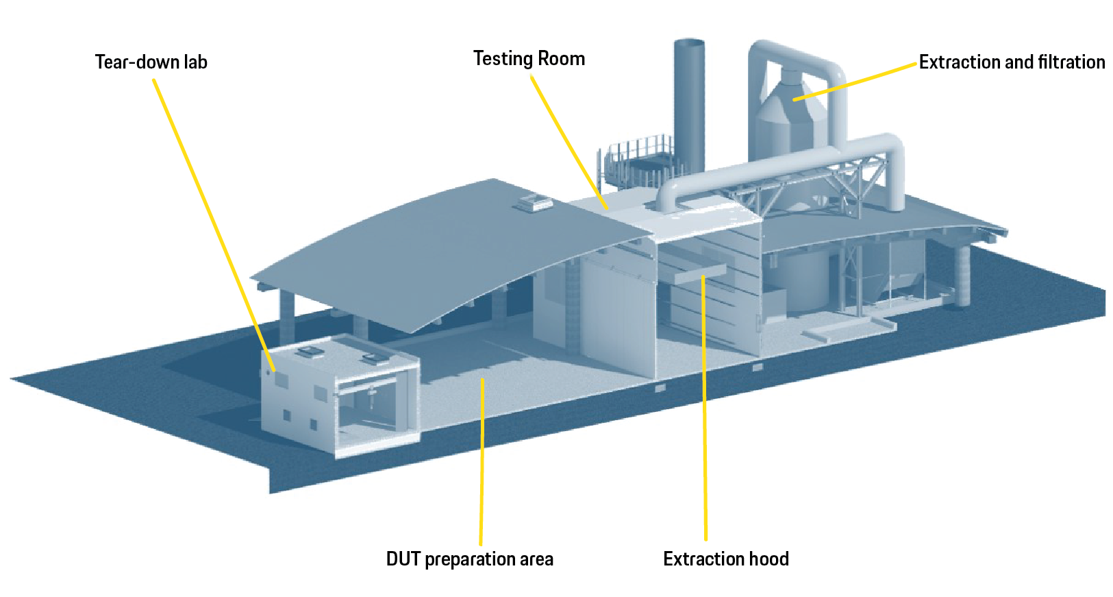Engineered for round-the-clock operation under rigorous safety conditions, the Battery Testing Site integrates fire-resistant steel paneling, advanced ventilation systems, and a high-capacity extraction unit with an integrated hood for safe substance handling. Overpressure panels further enhance safety during extreme testing scenarios.